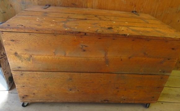 WOOD CHEST (VINTAGE) *ON WHEELS*