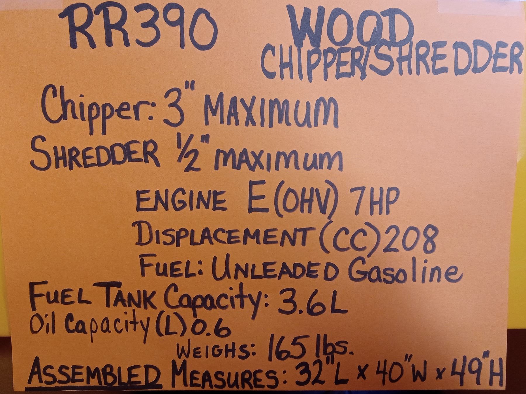 CHIPPER HAS 3" DIAMETER MAXIMUM; SHREDDER HAS 1/2" DIAMETER MAX.