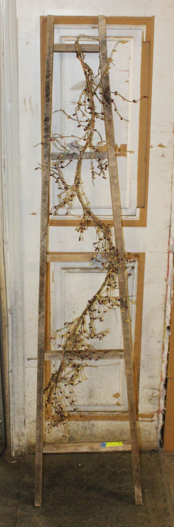 WOOD CRAFT DECO LADDER, W BERRY GARLAND; 5FT