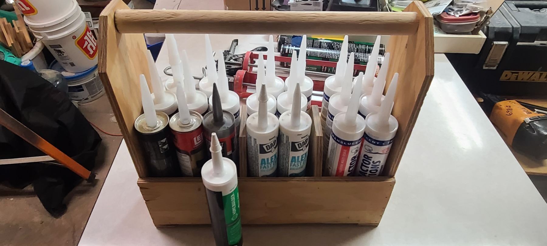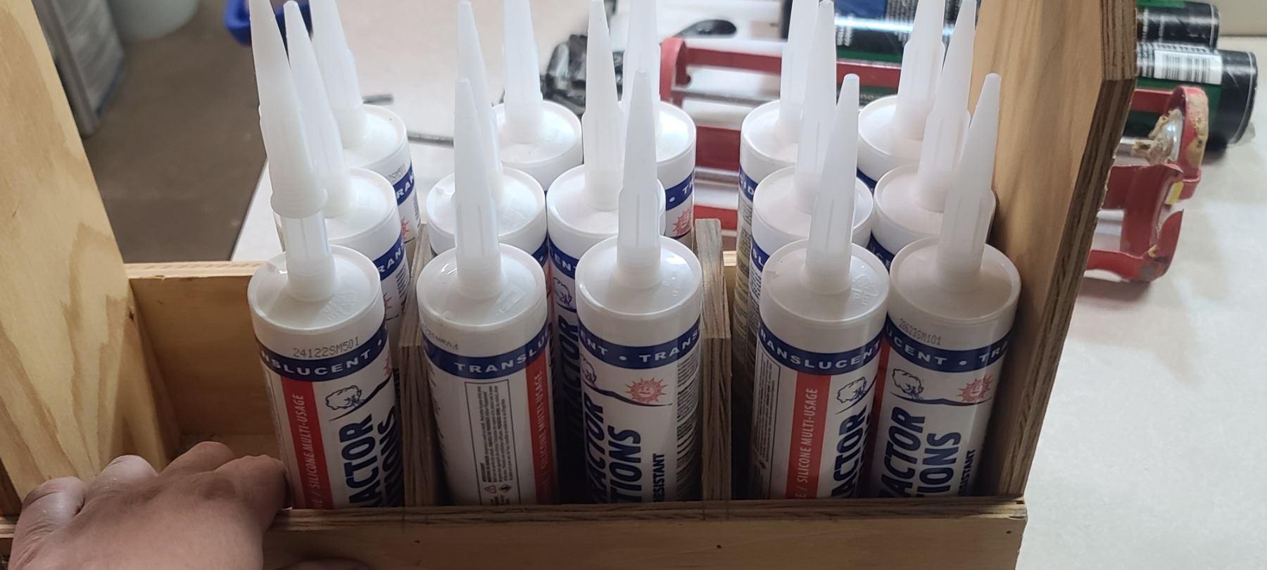 WOOD CRATE WITH MULIPLE TUBES OF CAULKING