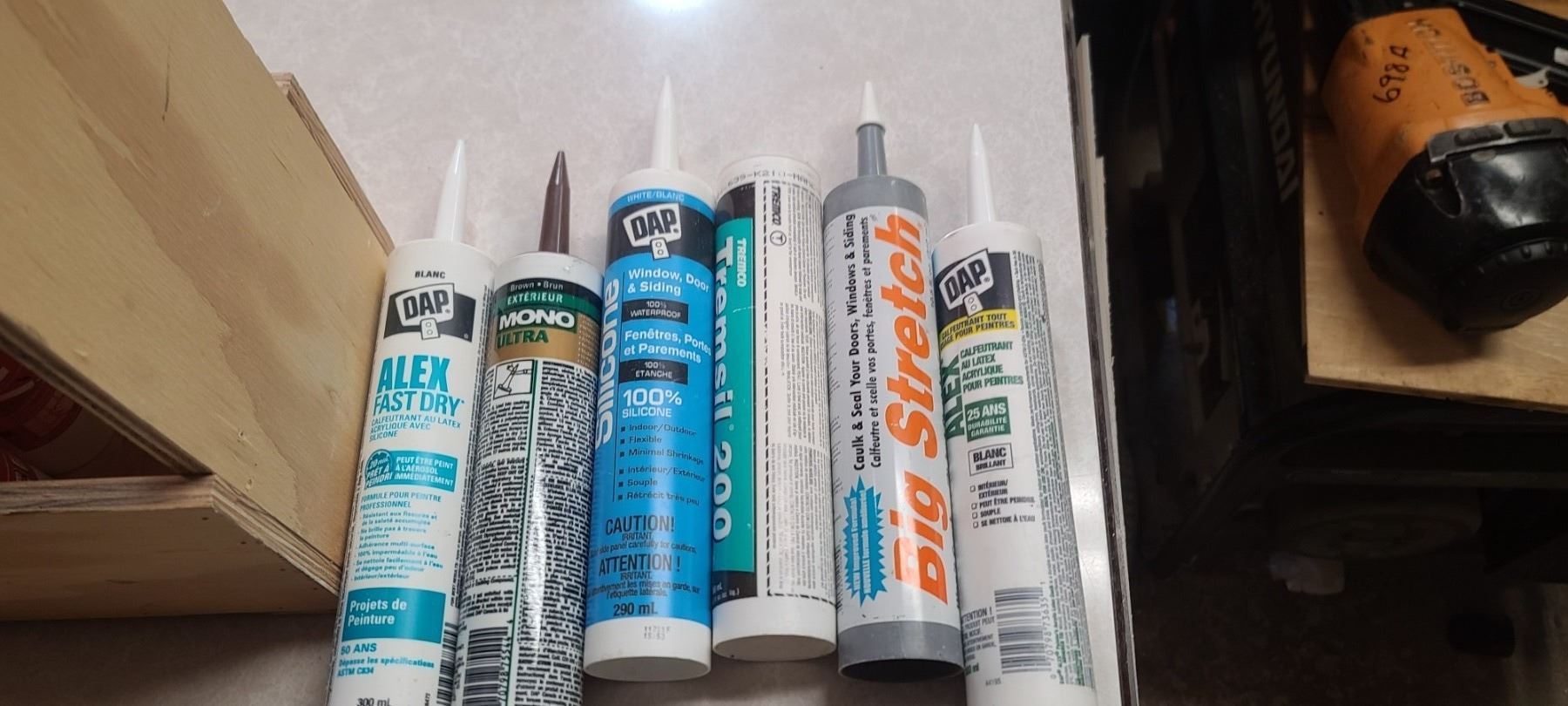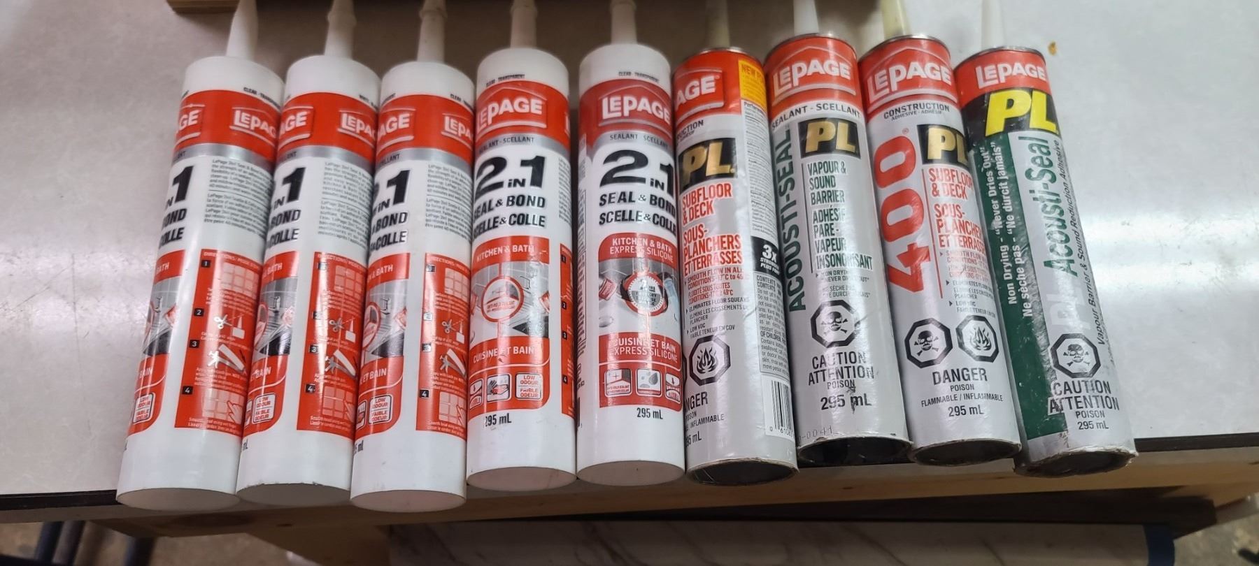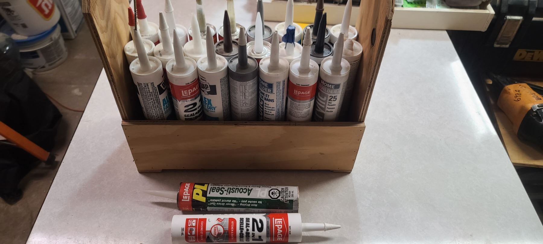 WOOD CRATE WITH MULIPLE TUBES OF CAULKING