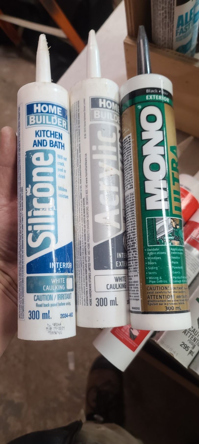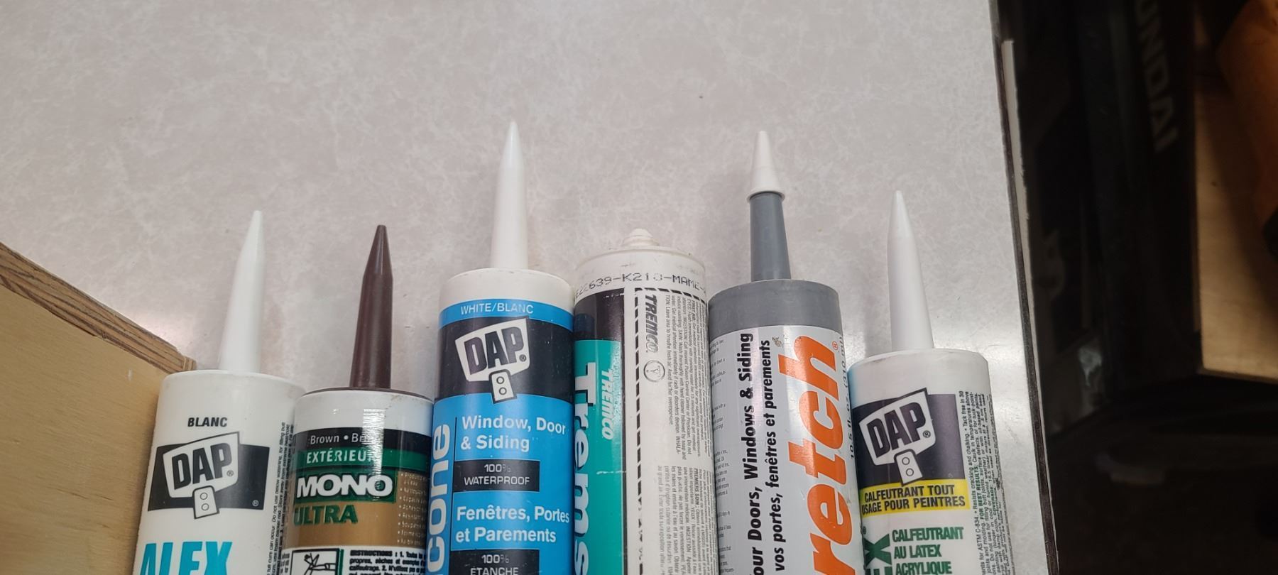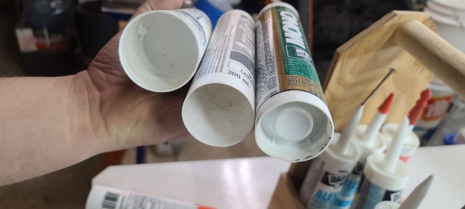 WOOD CRATE WITH MULIPLE TUBES OF CAULKING