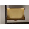 4 1/2" X 3" X 4 1/4". LOCK IS FOR DECORATION AND AND HOLDS LID IN PLACE. DOES NOT LOCK.