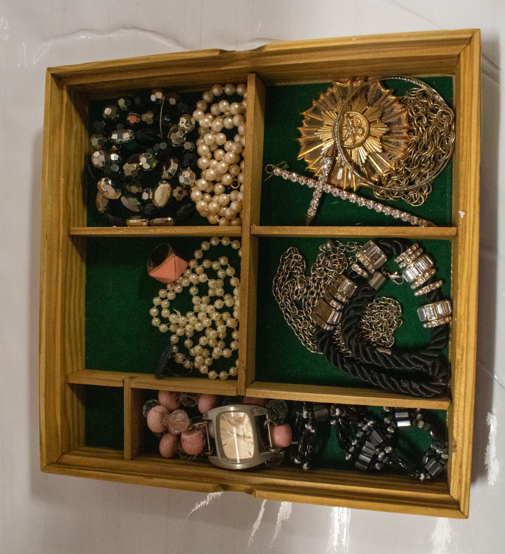 WOOD FLAT FULL OF ESTATE JEWELRY-ESTATE
