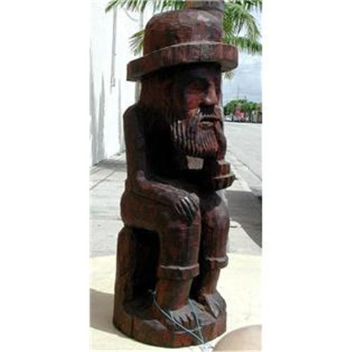 A WOOD FOLK ART SCULPTURE CHARACTER STUDY OF AN OLD MAN WITH A PIPE<p>An attractive and charming character study of an old man wearing a hat, seated on a tree trunk and smoking a pipe, which he holds in his left hand. This sculpture is hand-carved from a dense single piece of heartwood tree trunk, probably rosewood or a similar hardwood. <p>Condition is excellent, origin is possibly northern Europe, circa early 20th century. Height is 13.75".