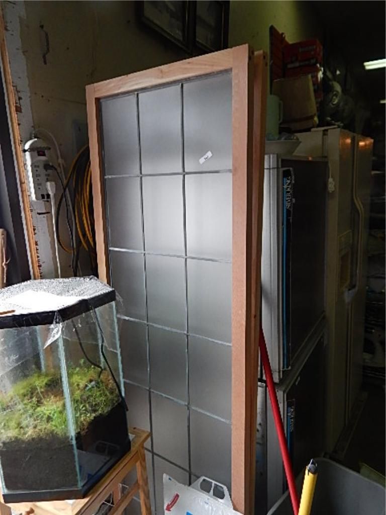 WOOD FRAMED LEADED GLASS DOOR