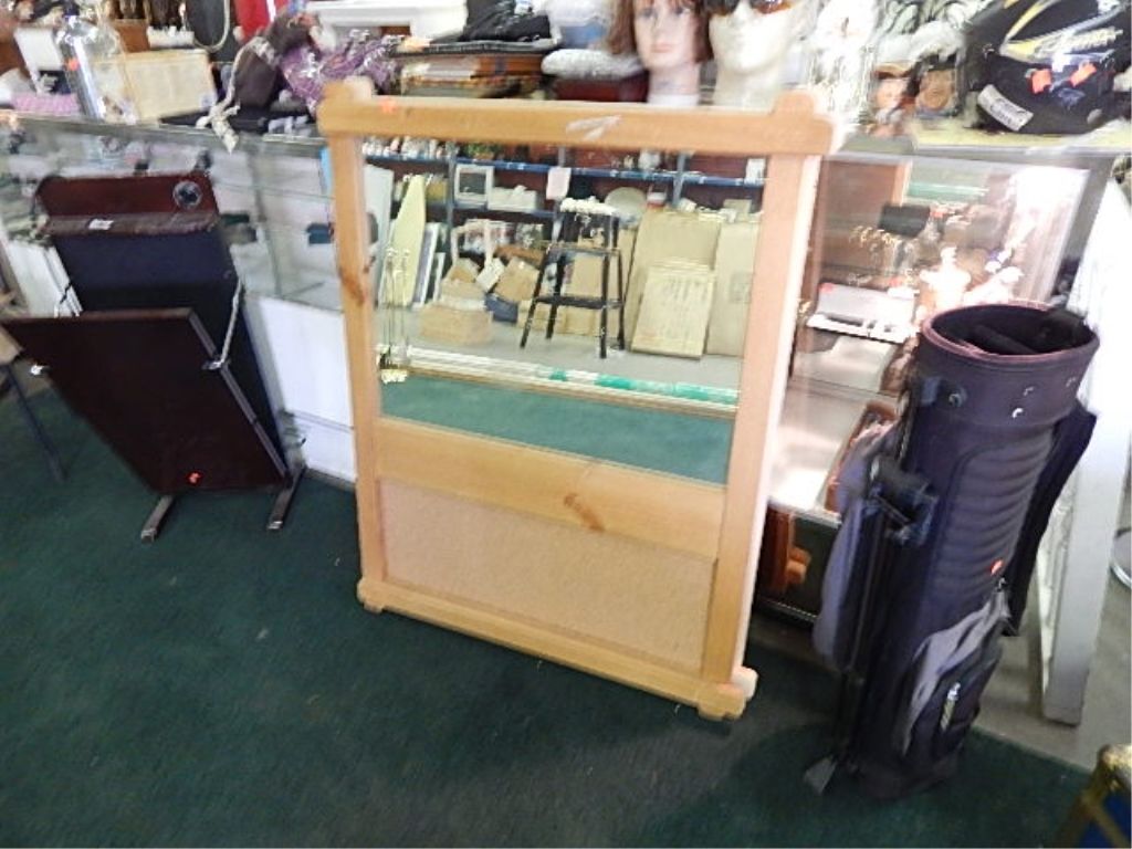 WOOD FRAMED MIRRORS WITH CORK BOARD - STAINED
