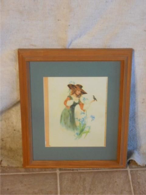 WOOD FRAMED PAINT MATTED OF WOMAN HOLDING BIRD