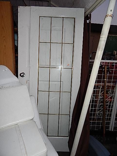 WOOD FRAMED (WHITE) LEADED GLASS DOOR