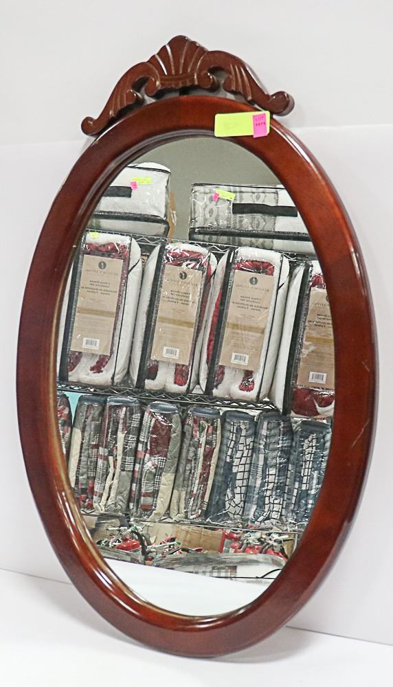 WOOD HANGING MIRROR APPROX H-29" DIAMETER-19"