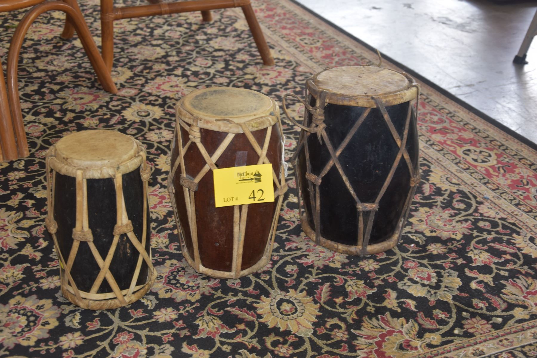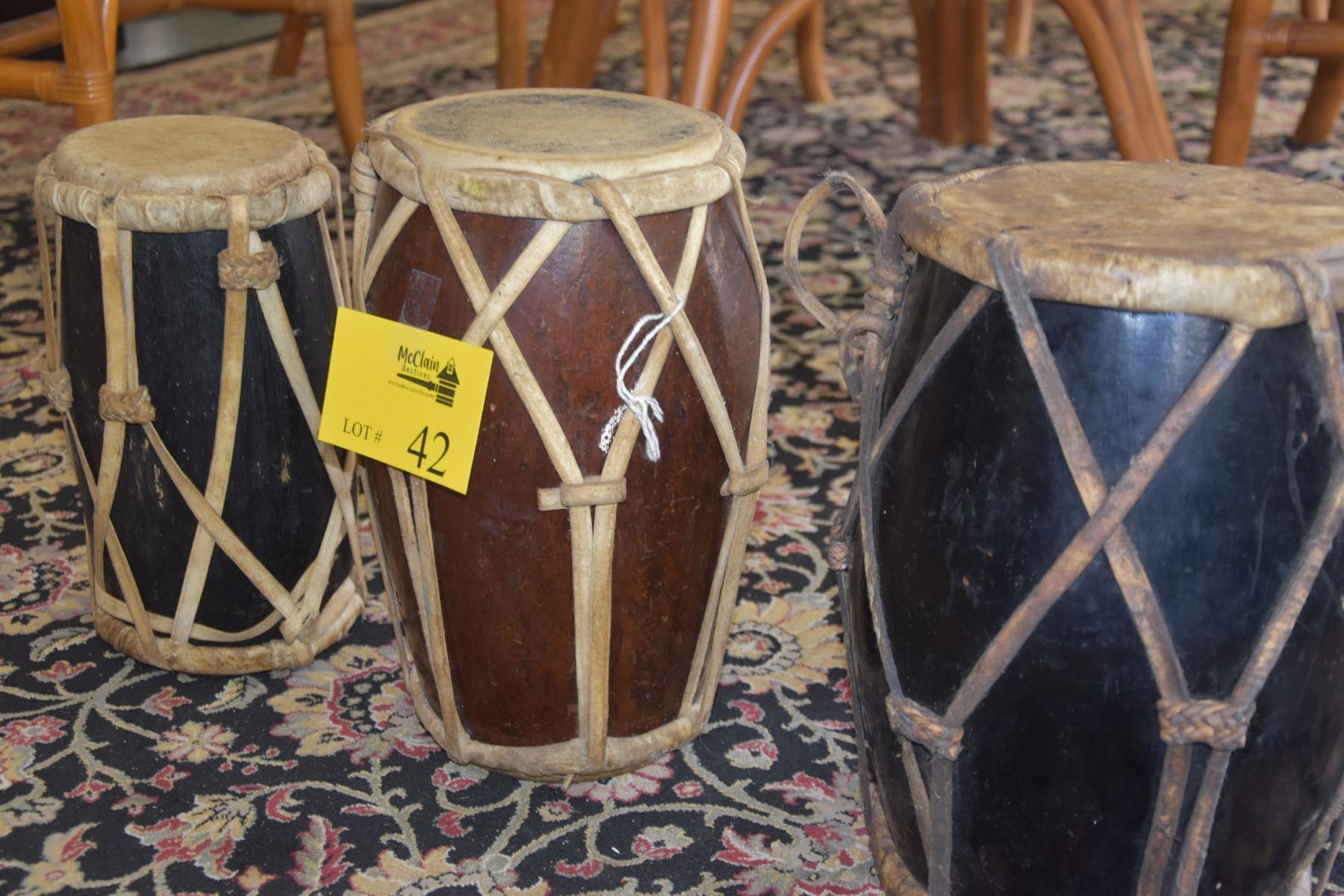 WOOD & LEATHER NATIVE DRUMS (12" - 13 1/2") (3 PCS)