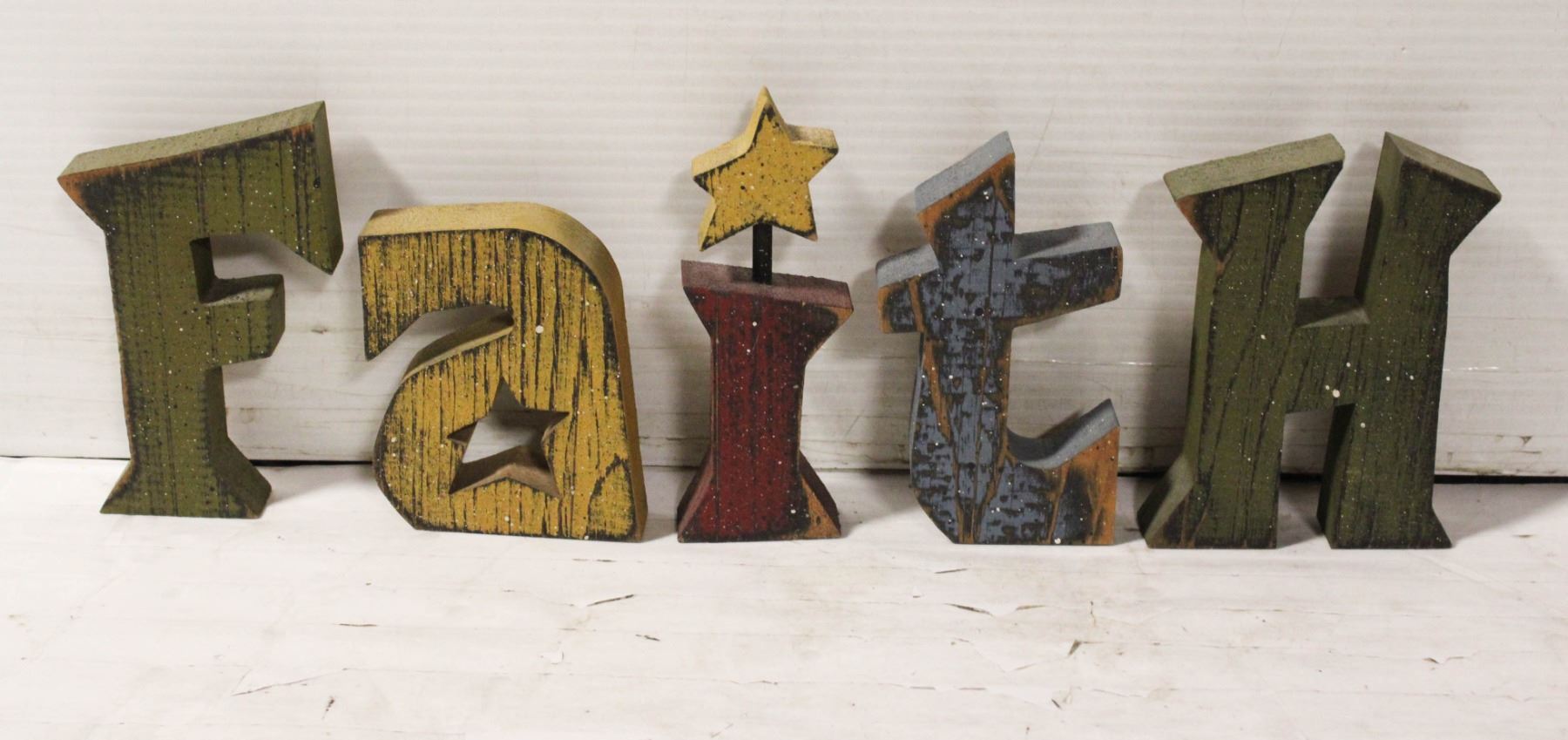 WOOD LETTERS "FAITH"- EACH MEASURES 6" X 1"