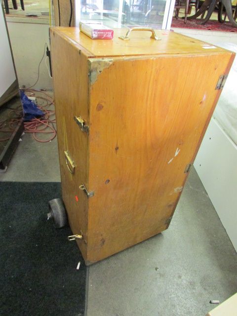 WOOD LIDDED BOX ON WHEELS - TOOL CABIENT