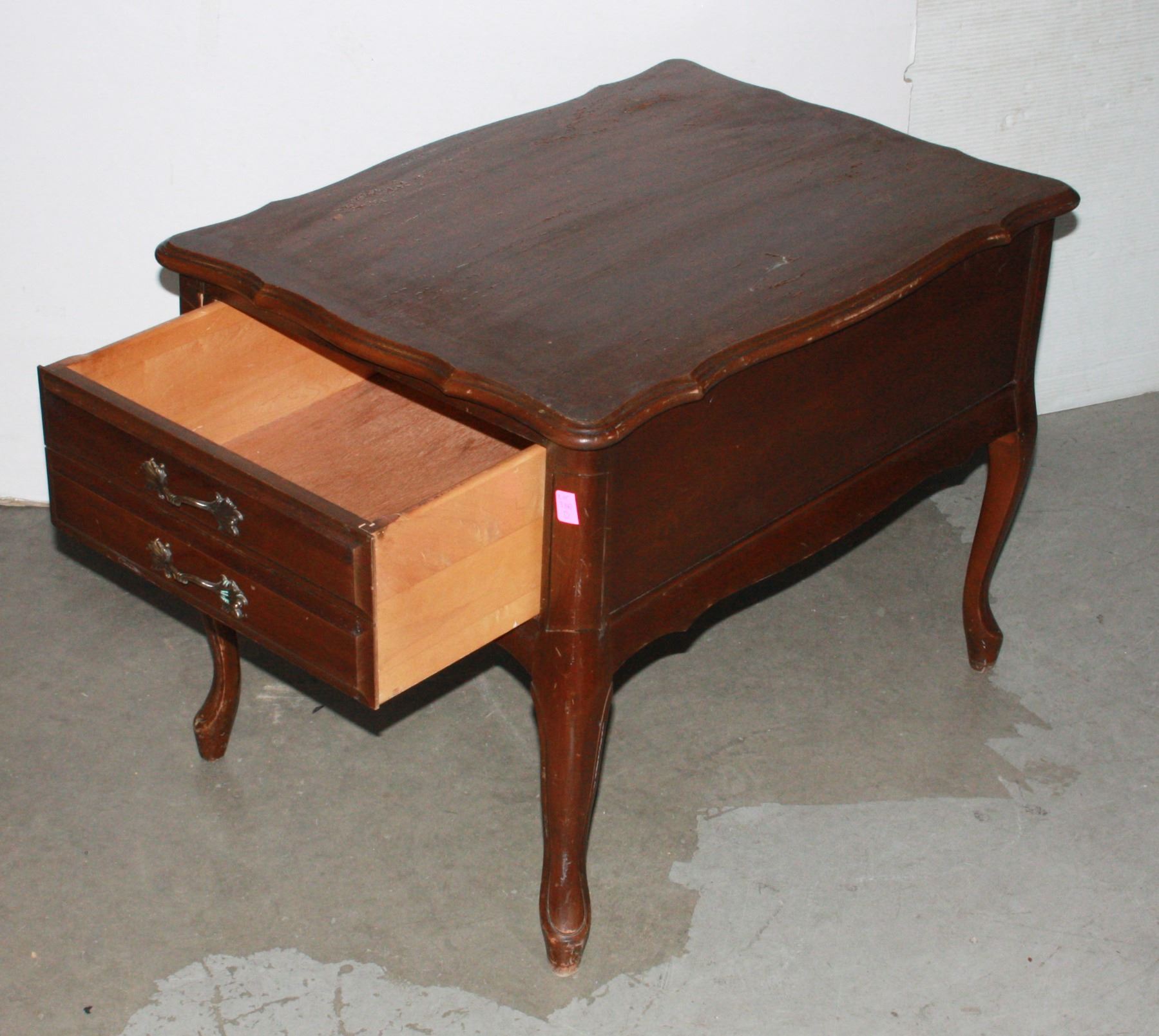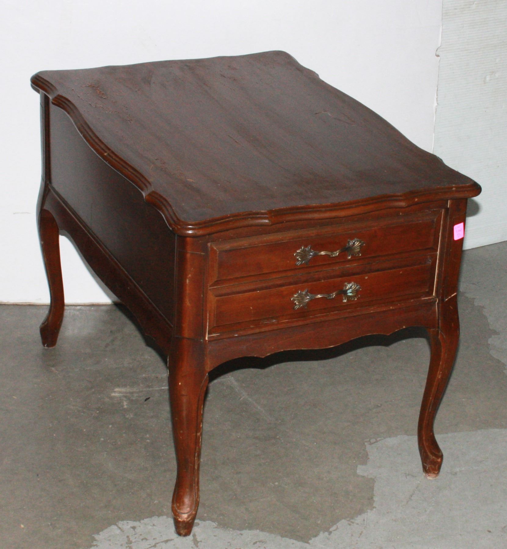 WOOD LOOK SIDE TABLE, SOME DAMAGE TO FINISH