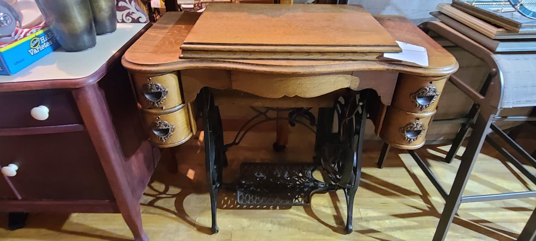 WOOD/METAL SEWING TABLE & BUNNYKINS DISHES