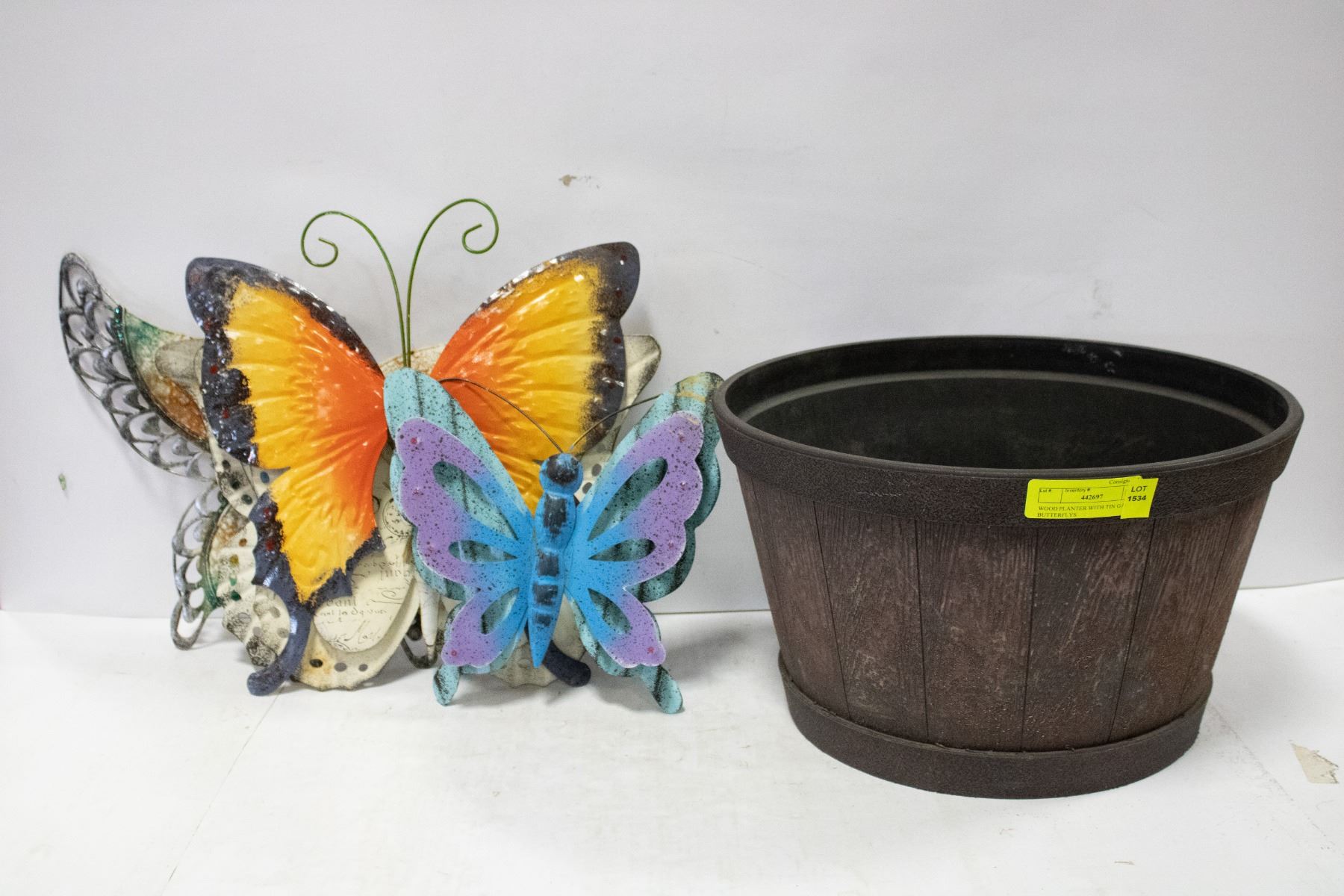 WOOD PLANTER WITH TIN GARDEN BUTTERFLYS