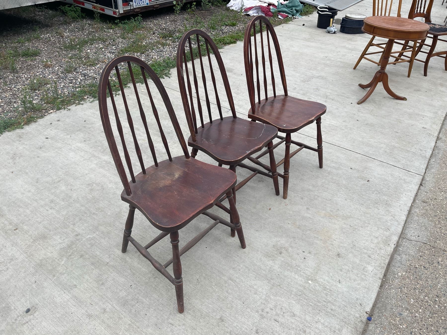 LOT OF 3 WOOD, ROUND BACK CHAIRS
