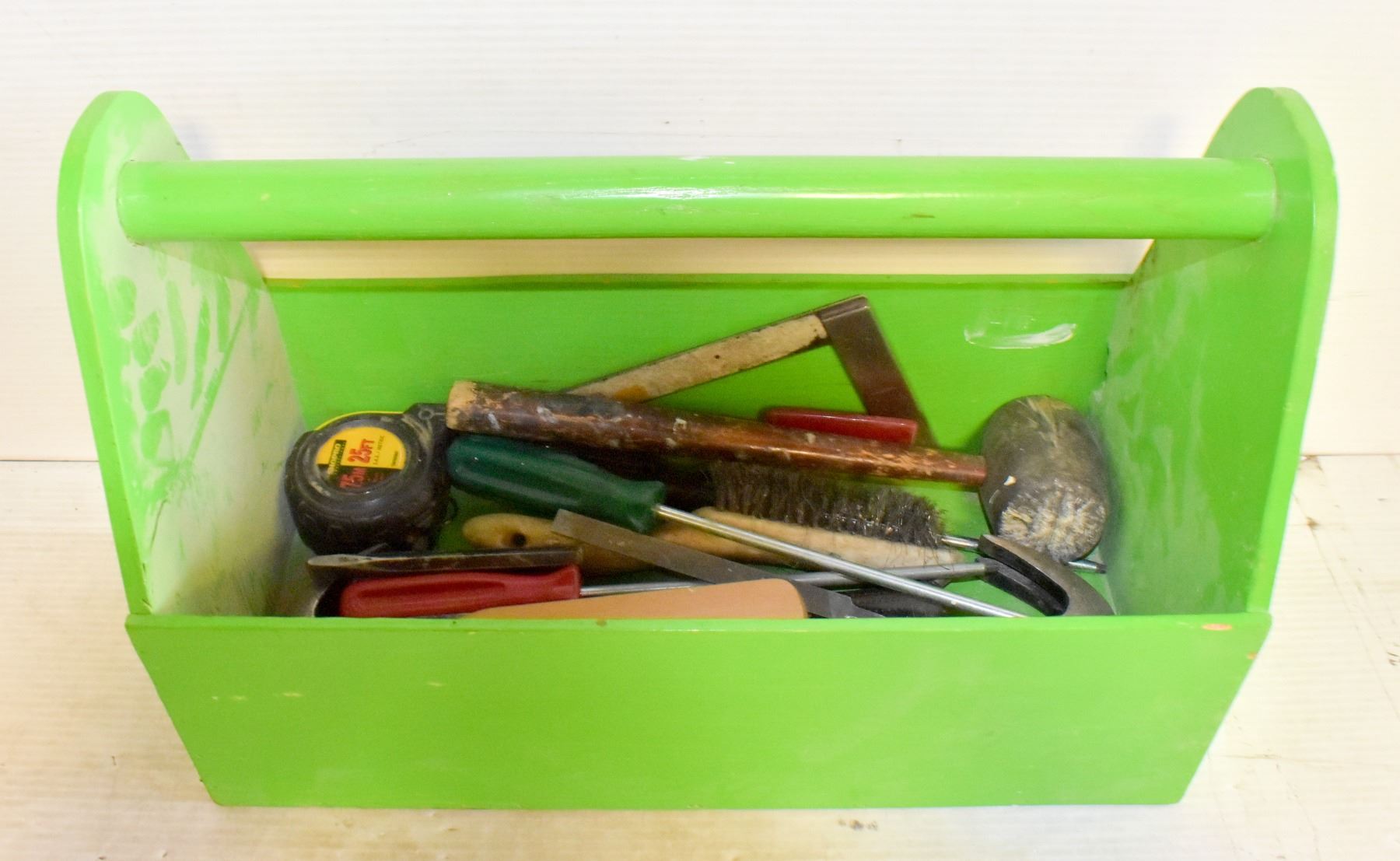 WOOD TOOLBOX WITH TOOLS