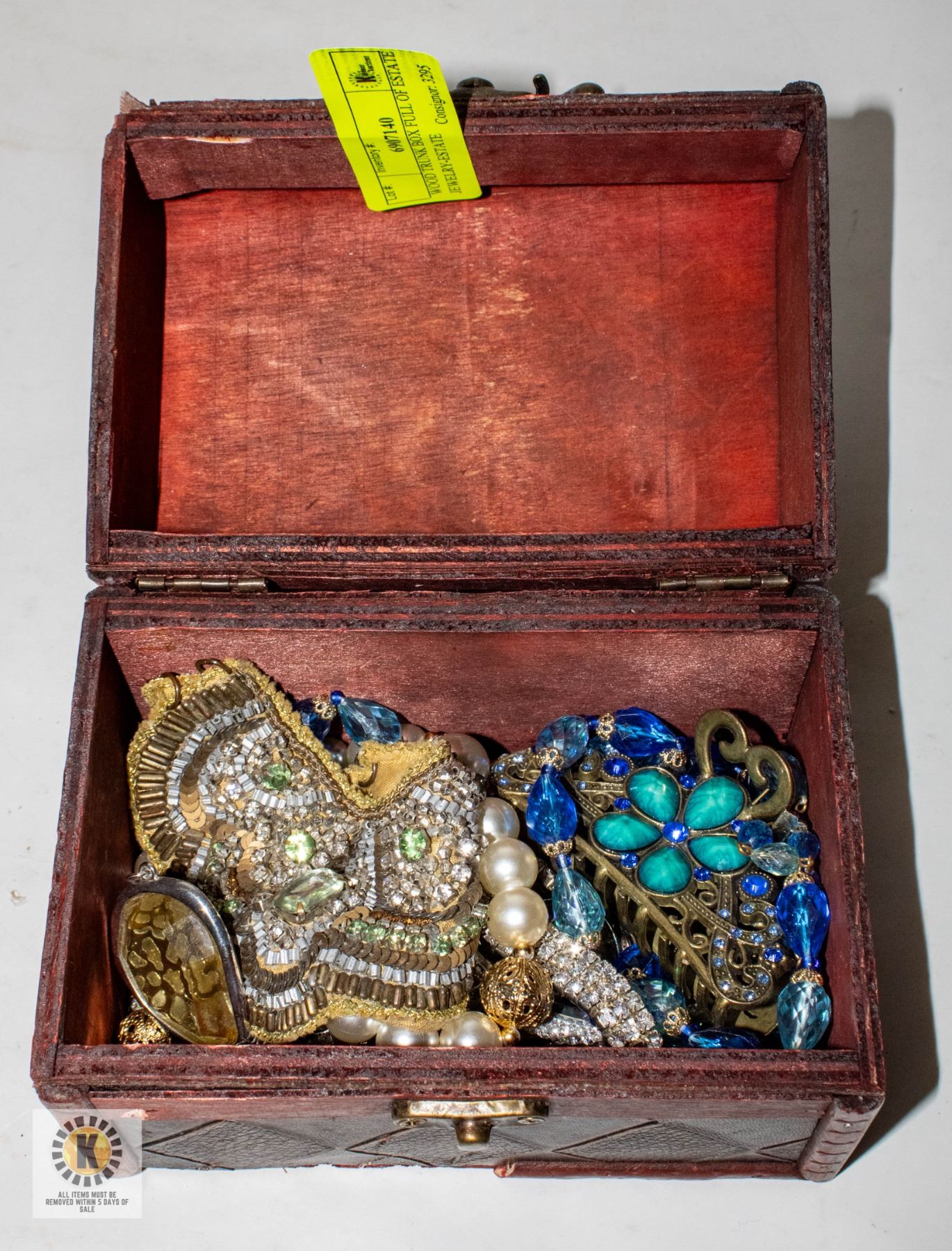 WOOD TRUNK BOX FULL OF ESTATE JEWELRY-ESTATE