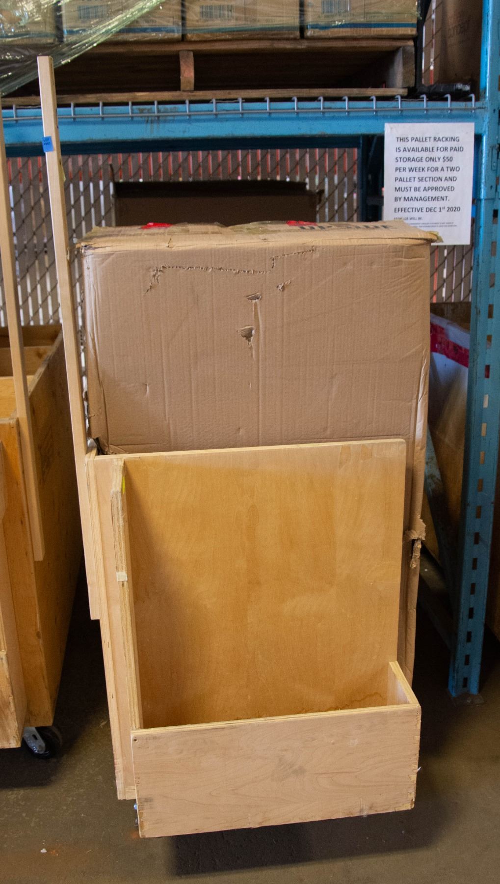 WOOD WAREHOUSE CART WITH MISC. CABINETRY SUPPLIES