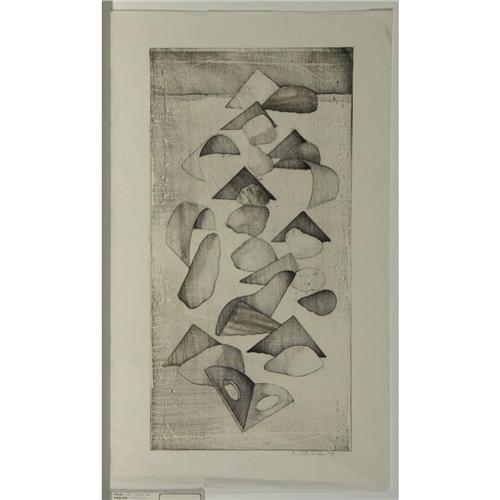 WOODCUT ON PAPER, Bill Ritchie (1954-), WA. ''Wavy Square All Twisted''. Signed and dated ''78'' lower right. Past auction label attached lower left. Unframed. More info. at the front desk. 15'' x 7.5''(image size)/ 18'' x 10.5''(paper size).