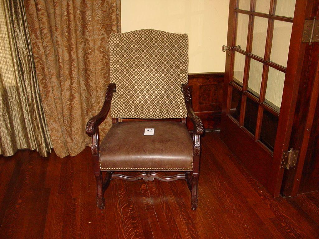 WOODEN AND LEATHER CHAIR WITH UPHOLSTERED BACK
