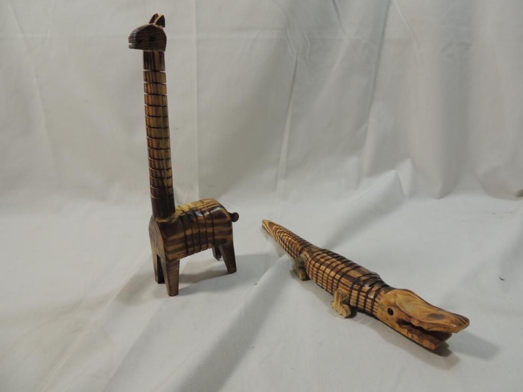 ARTICULATED FOLK ART ANIMALS ALLIGATOR AND GIRAFFE AS SHOWN. SEE PHOTO FOR MORE DETAILS.