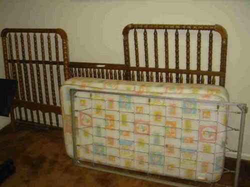 WOODEN BABY BED W/ BOX SPRINGS & MATTRESS