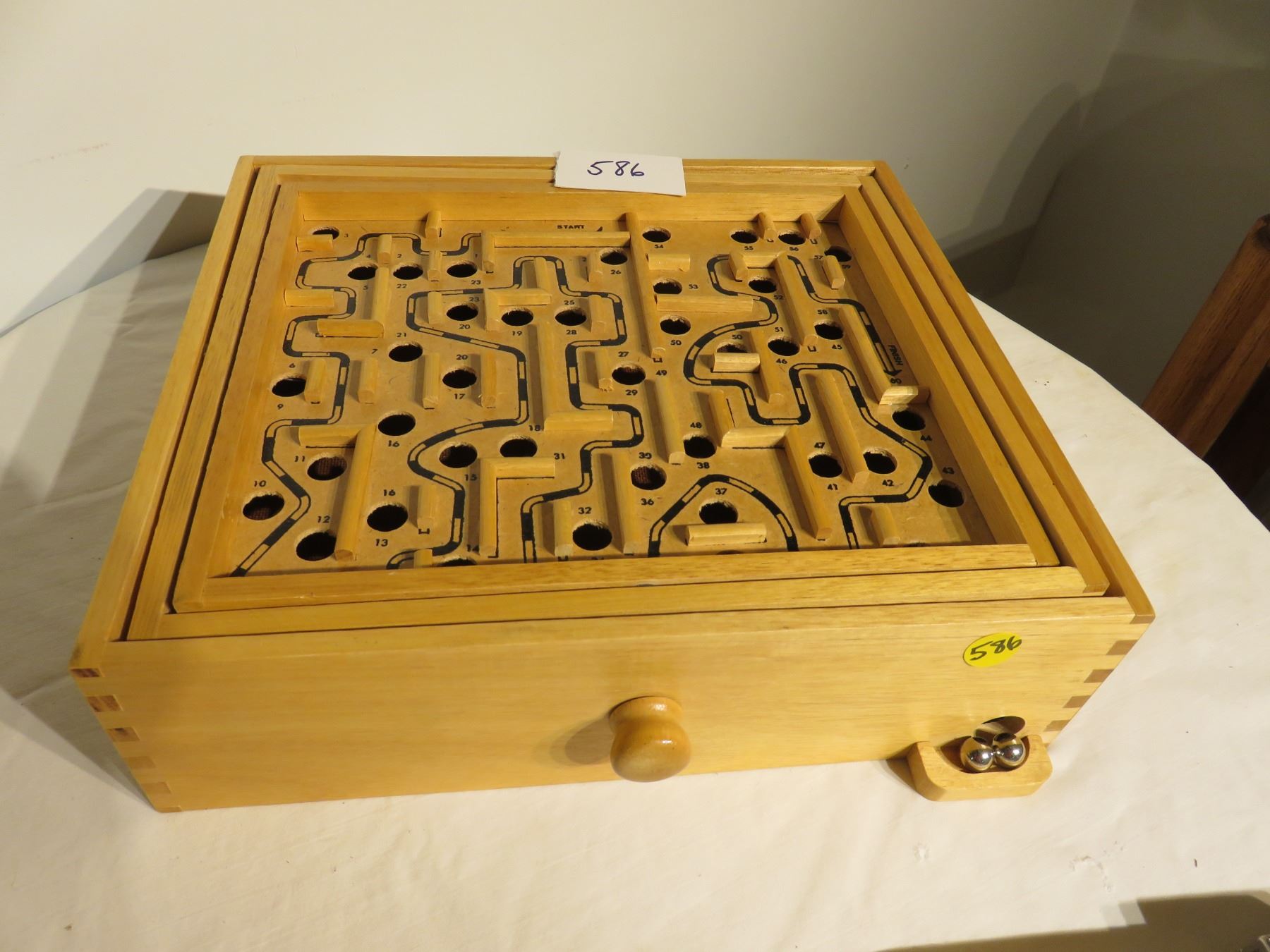 WOODEN BALANCE MAZE GAME WITH MARBLES