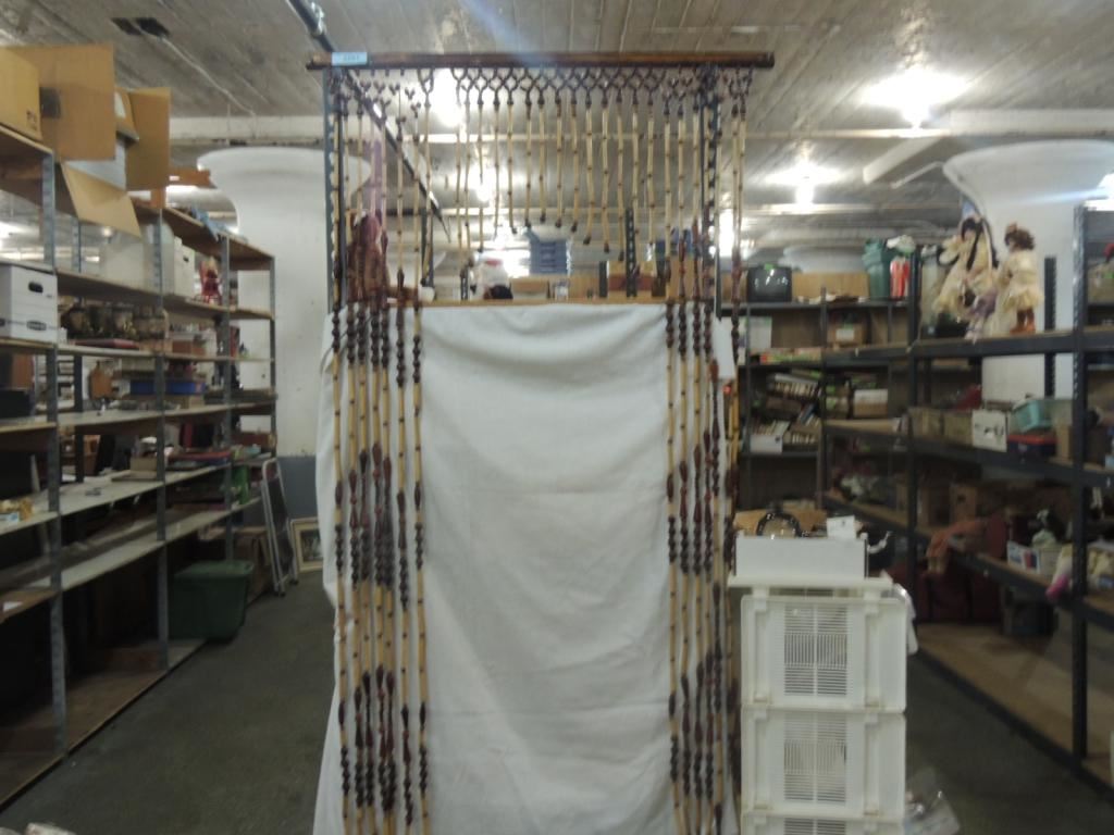 DECORATIVE CURTAIN, WOODEN BEADS, WOODEN BEADED CURTAIN, VINTAGE DECORATIVE AS SHOWN SEE PHOTO FOR MORE DETAILS.