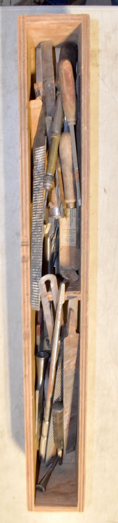 WOODEN BOX FULL OF ASSORTED HAND TOOLS