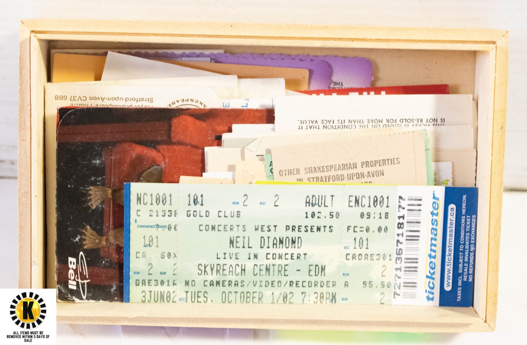 WOODEN BOX OF CONCERT STUBS
