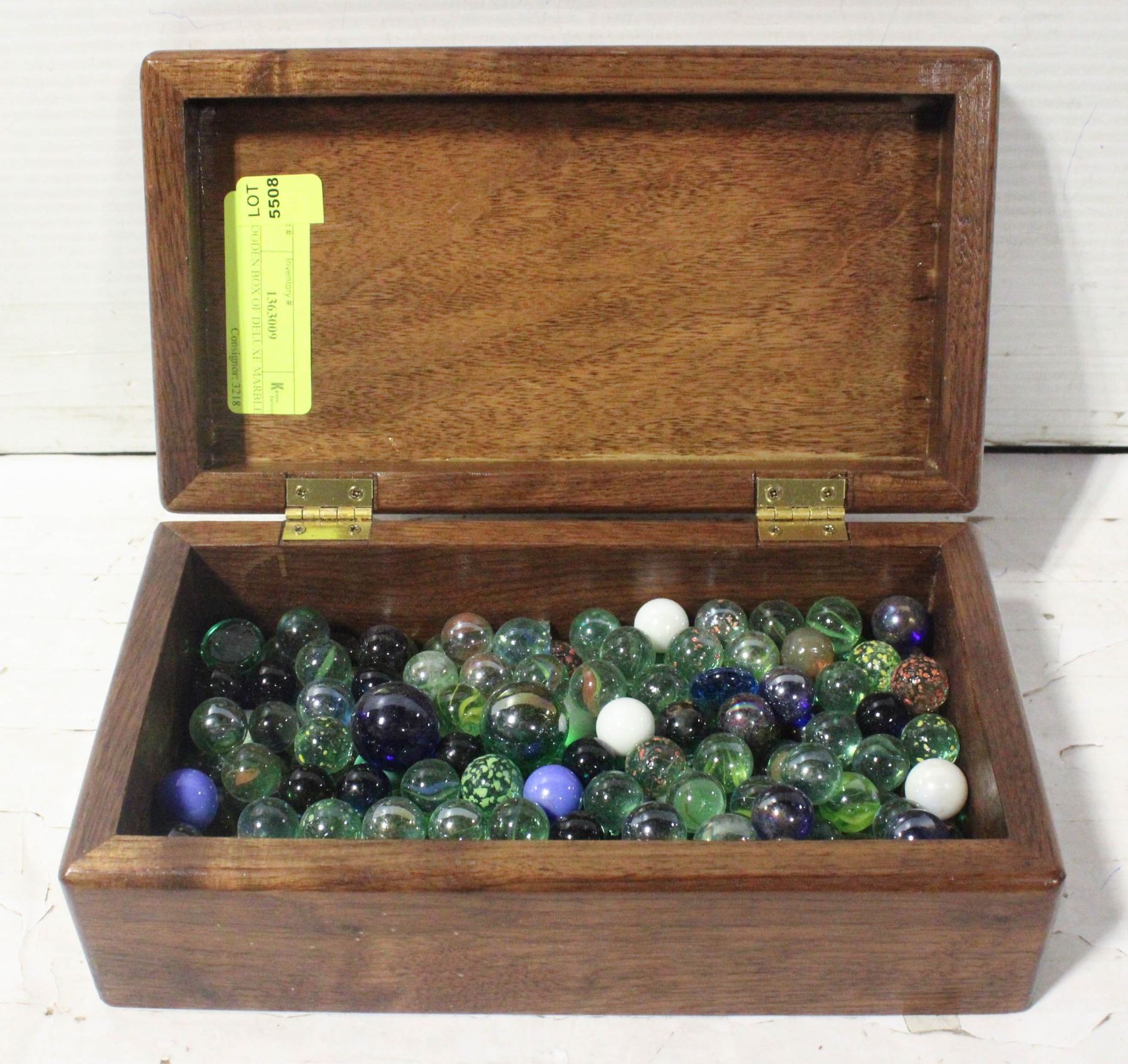 WOODEN BOX OF DELUXE MARBLES