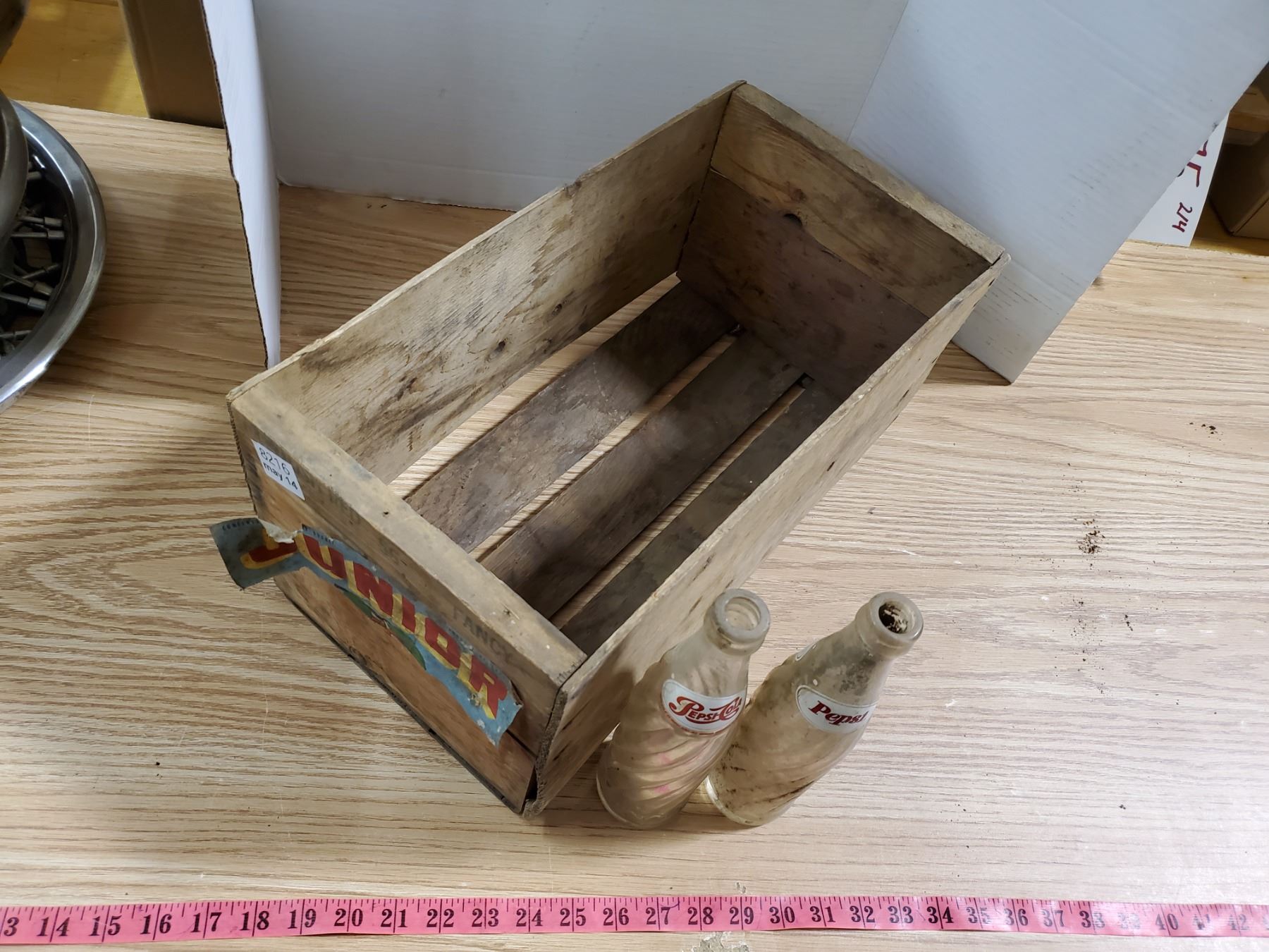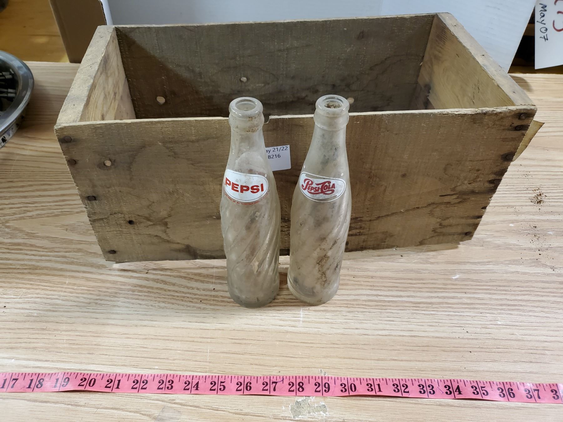 WOODEN BOX W/ 2 PEPSI COLA BOTTLES