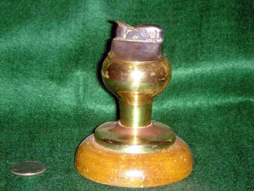 WOODEN & BRASS TONE TABLE LIGHTER - BASE IS SCRATCH