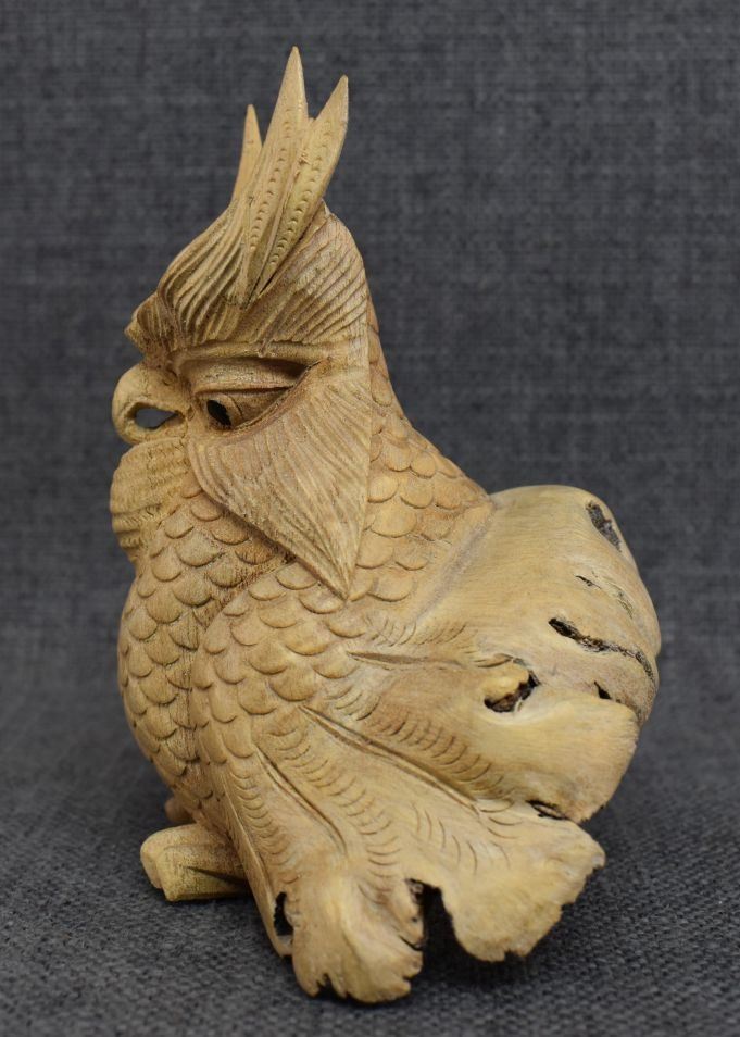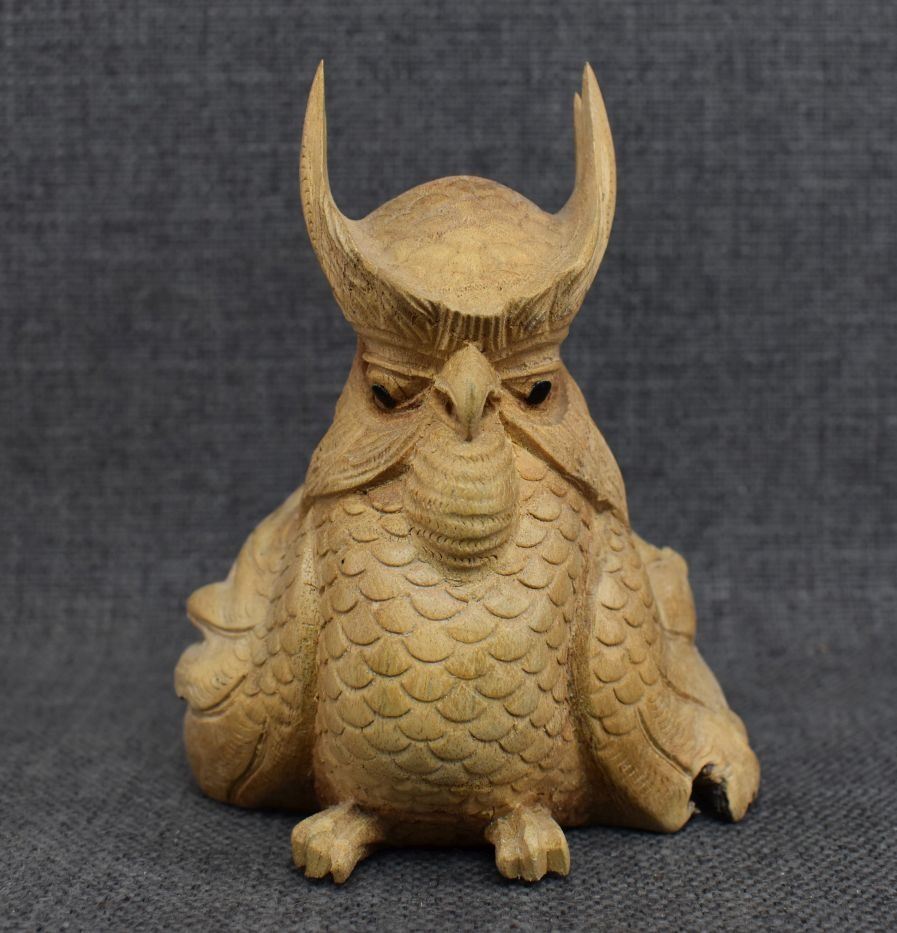 vintage carved wooden owl 5.25" x 4.25" x 3.5"