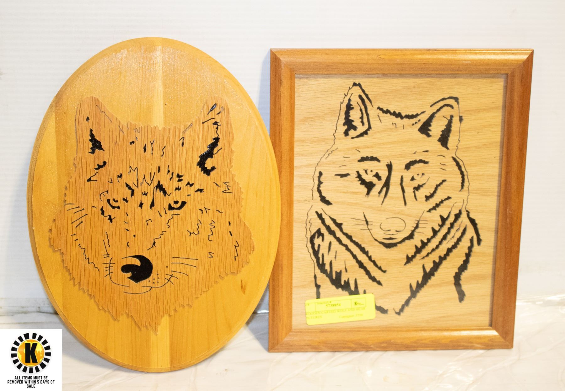 WOODEN CARVED WOLF AND BEAR PICTURES