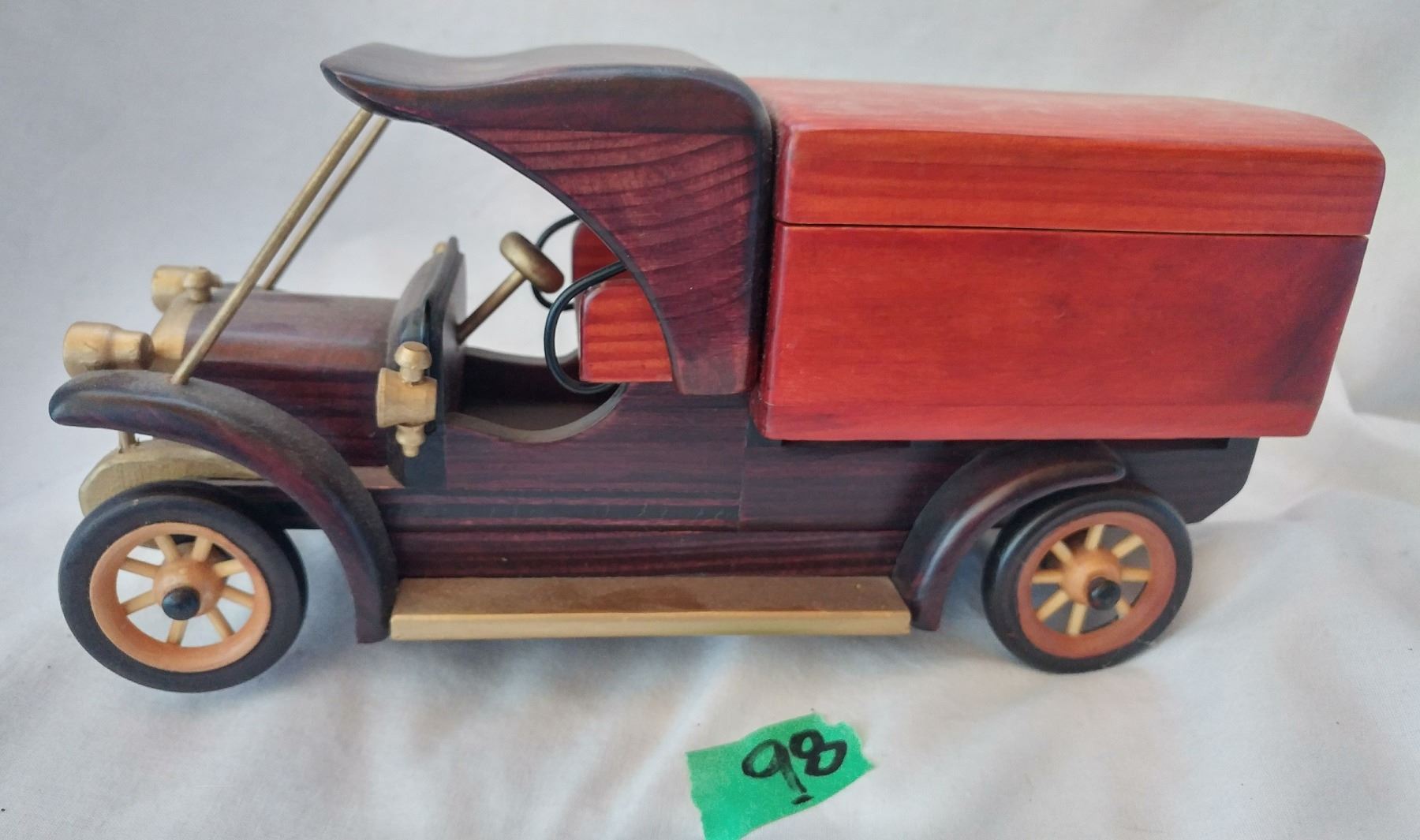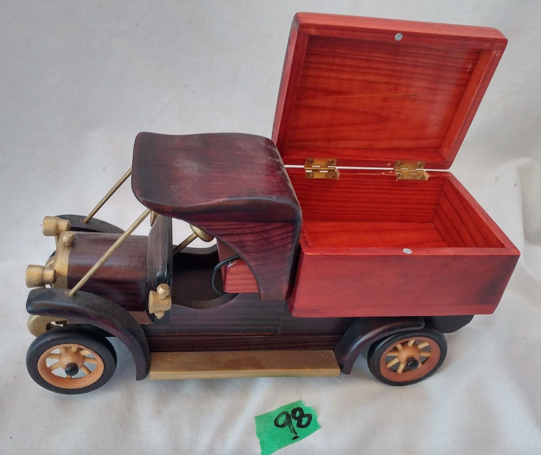 WOODEN CAR WITH BOX THAT OPENS G - USED CONDITION