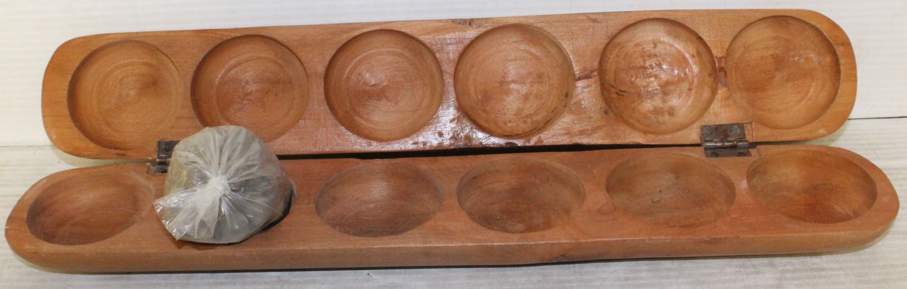 WOODEN CASE WITH COMES WITH BAG OF BEADS