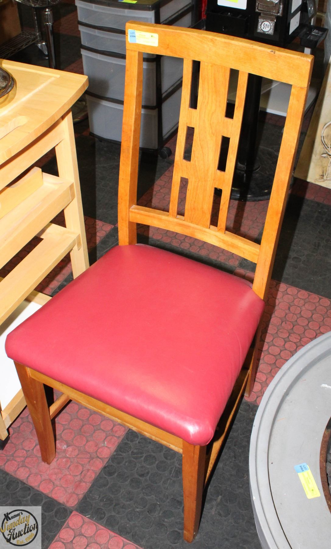 WOODEN CHAIR WITH RED LEATHER SEAT
