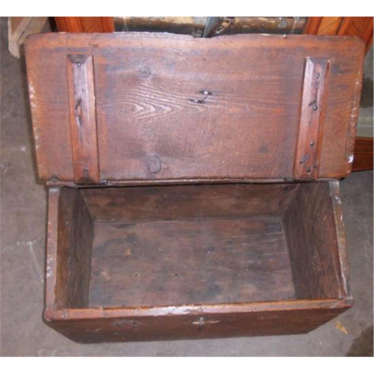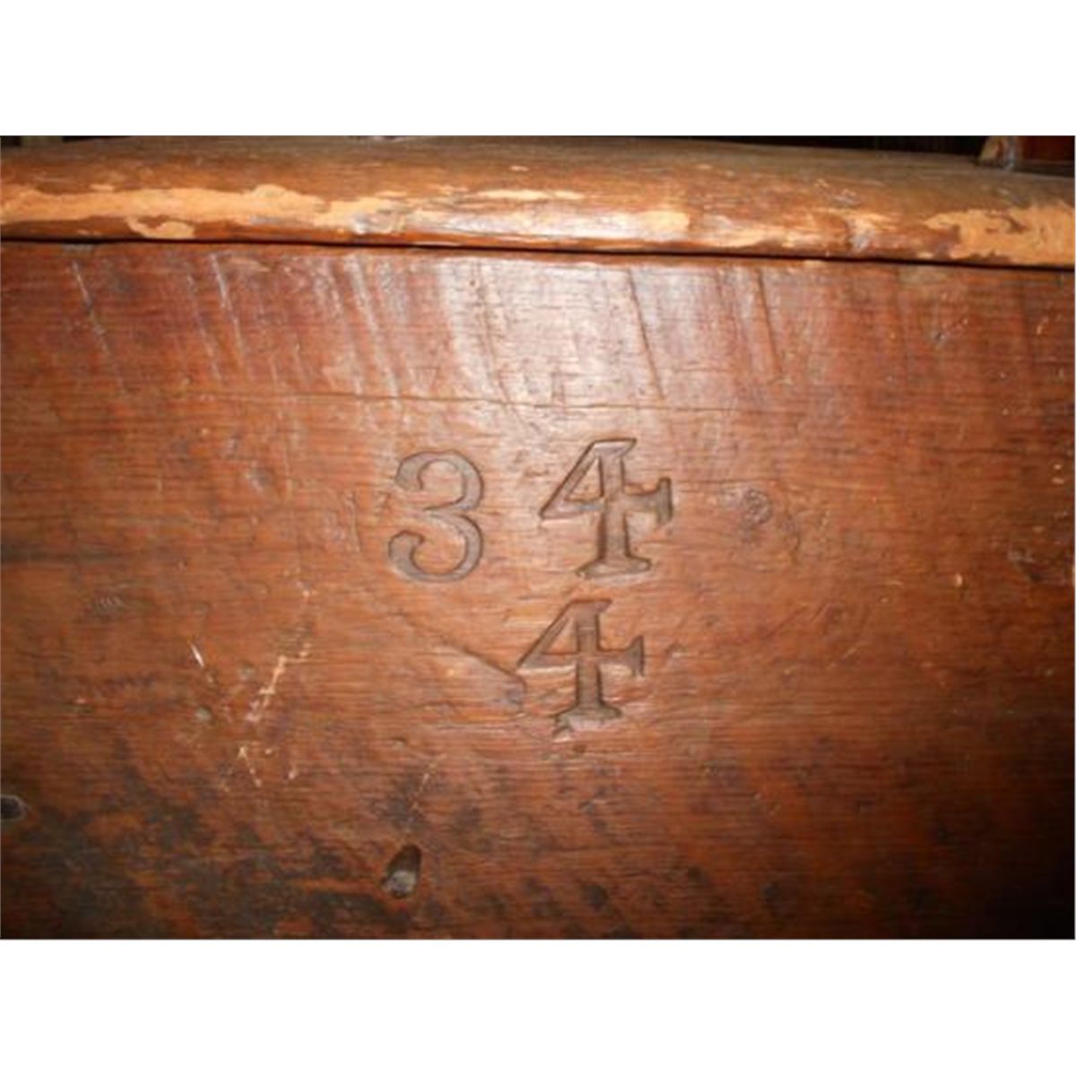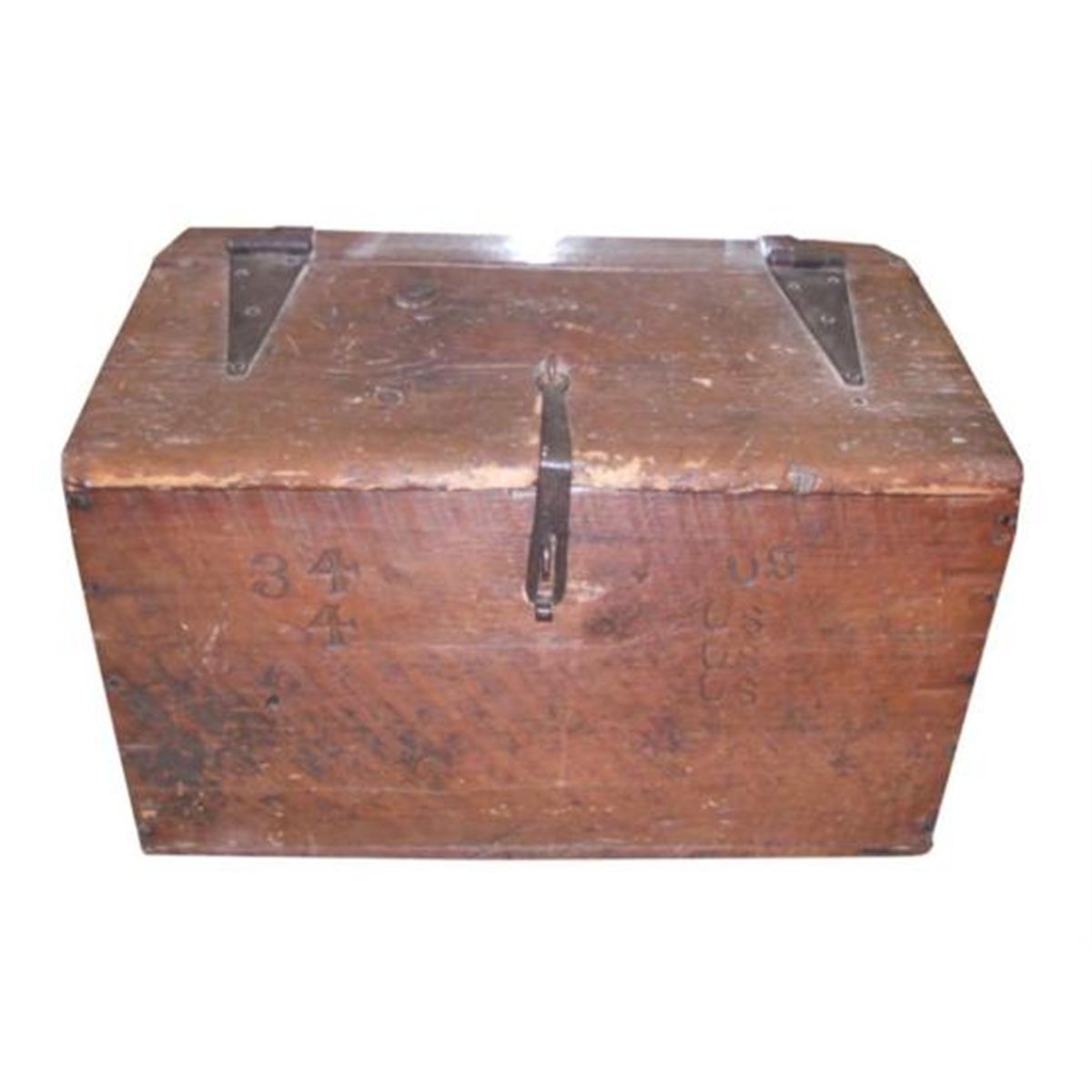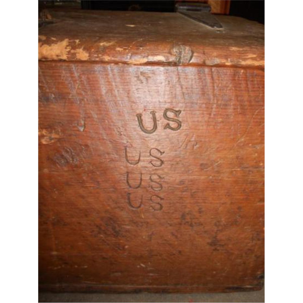 WOODEN CIVIL WAR TRUNK - MEASURES 30 inches Wide x 19 inches Depth x 21 inches height
