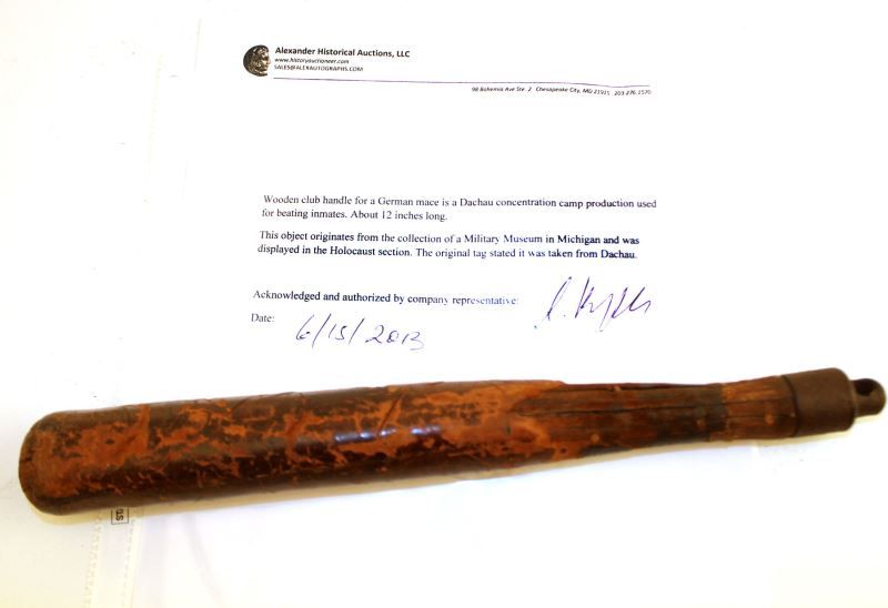 Club measures approximately 12 inches in length and comes with a certificate of authenticity from Alexander Historical Auctions, LLC. Some wear is present; overall in very good condition.