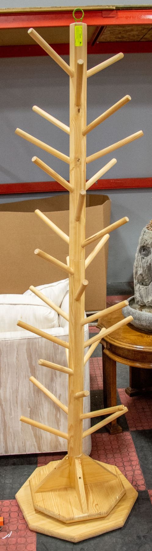 WOODEN COAT RACK 77" TALL - NEEDS REPAIR AT BASE