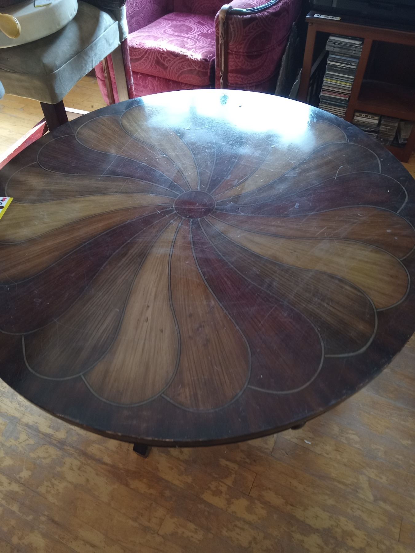 WOODEN COFFEE TABLE C/W 3 LEGS ONE REQUIRES REPAIR