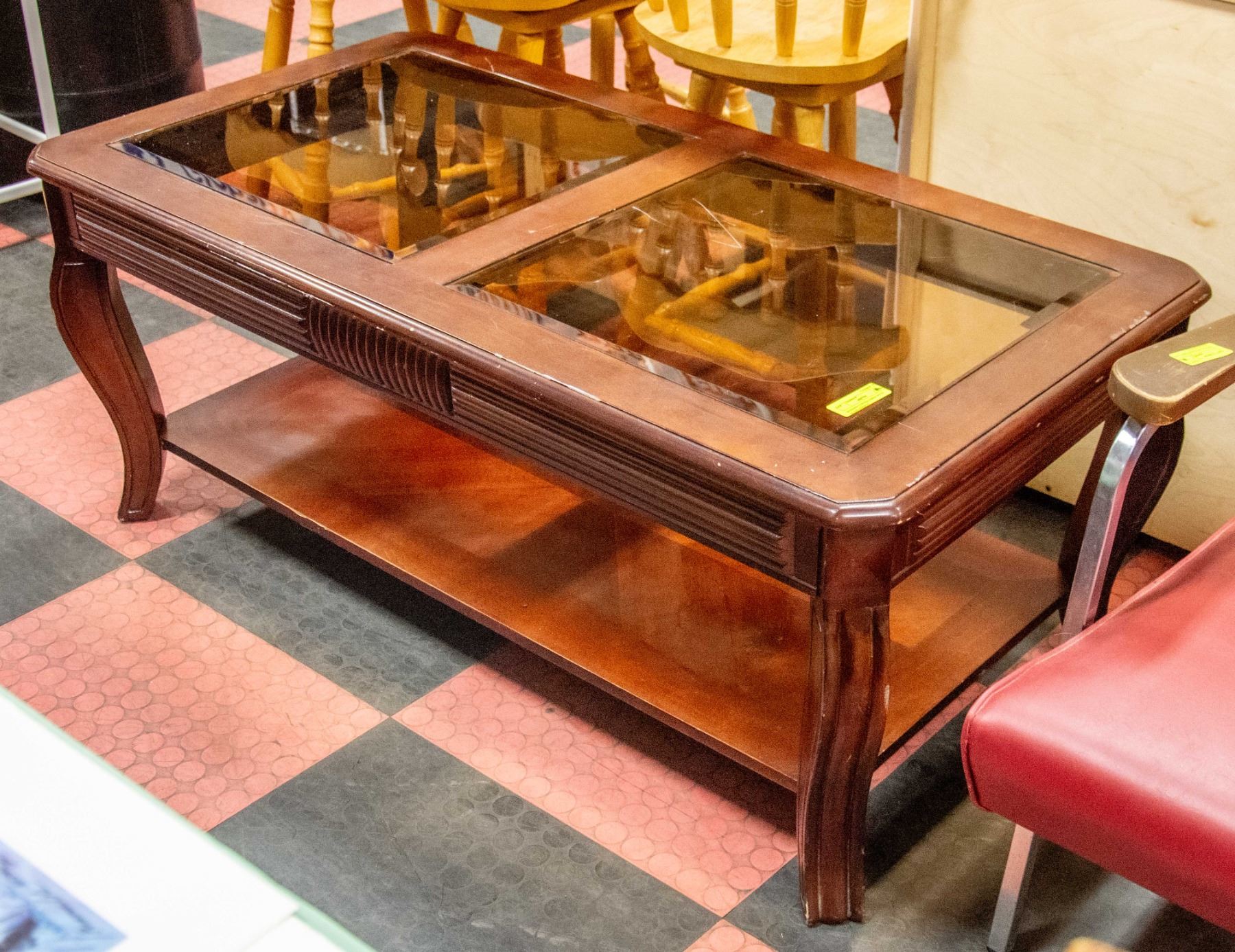WOODEN COFFEE TABLE WITH GLASS INSERTS