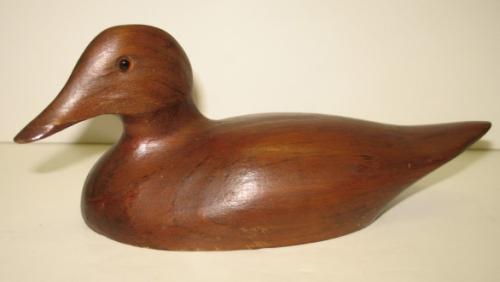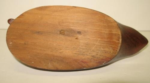 HALF-SIZE WOODEN DECOY. Unpainted and unsigned. Slightly turned head. 8” L