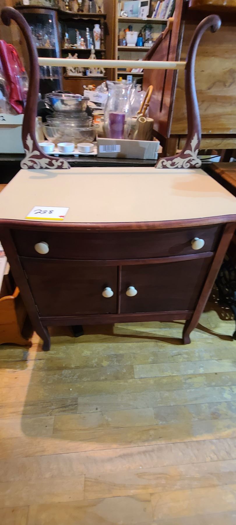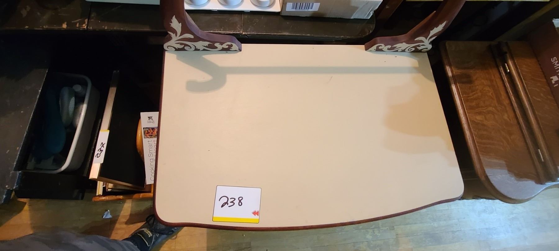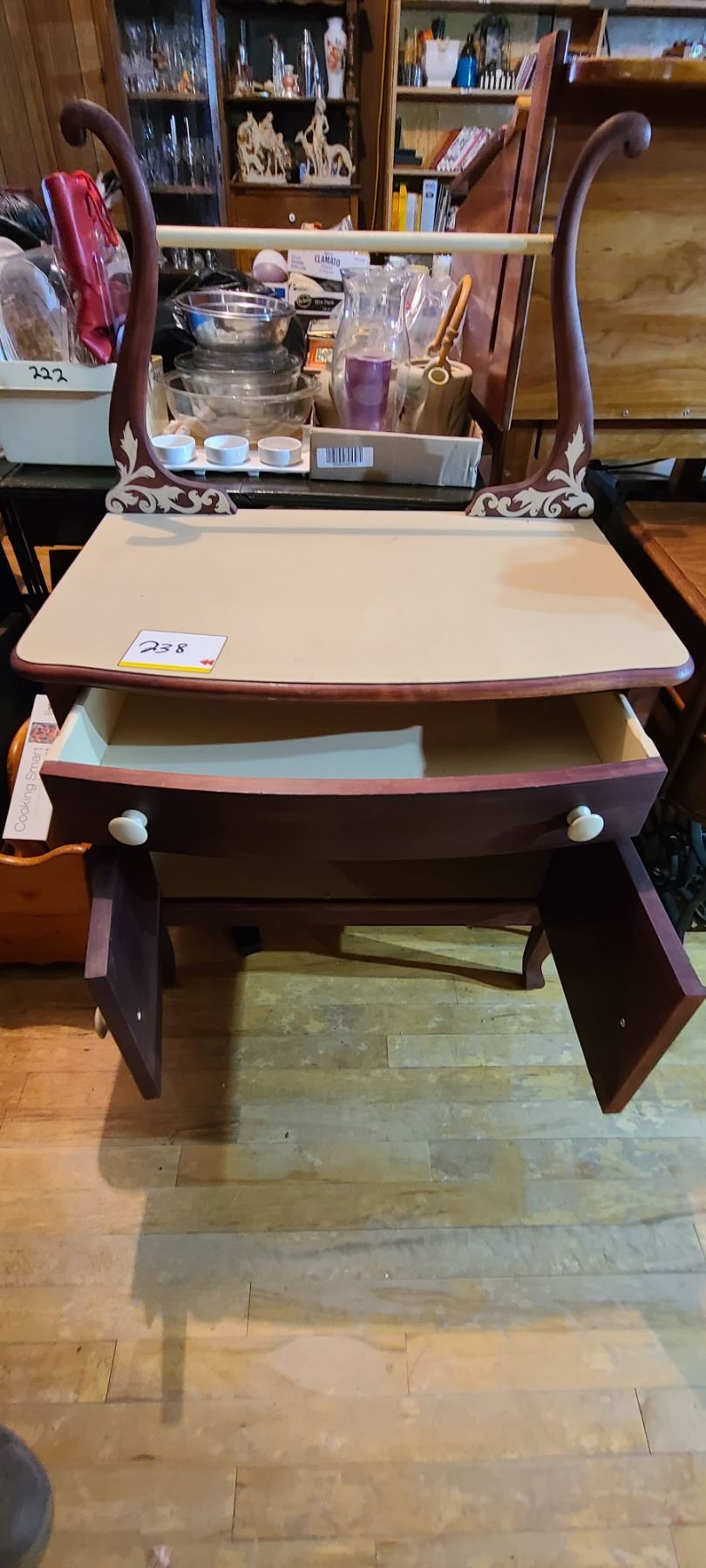 WOODEN DESK. 1 DRAWER AND CUPBOARD