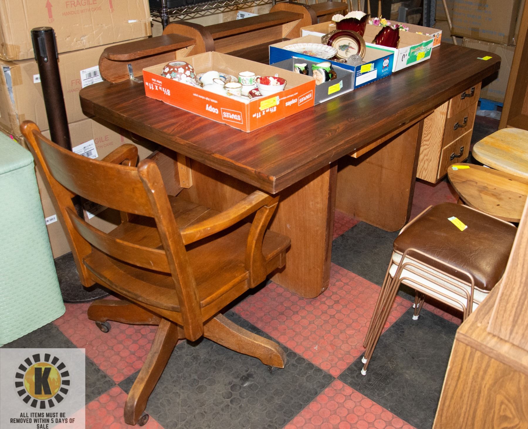 DESK H-30.5" W-36" L-60"ALL ITEMS MUST BE REMOVED WITHIN 5 DAYS OF SALE