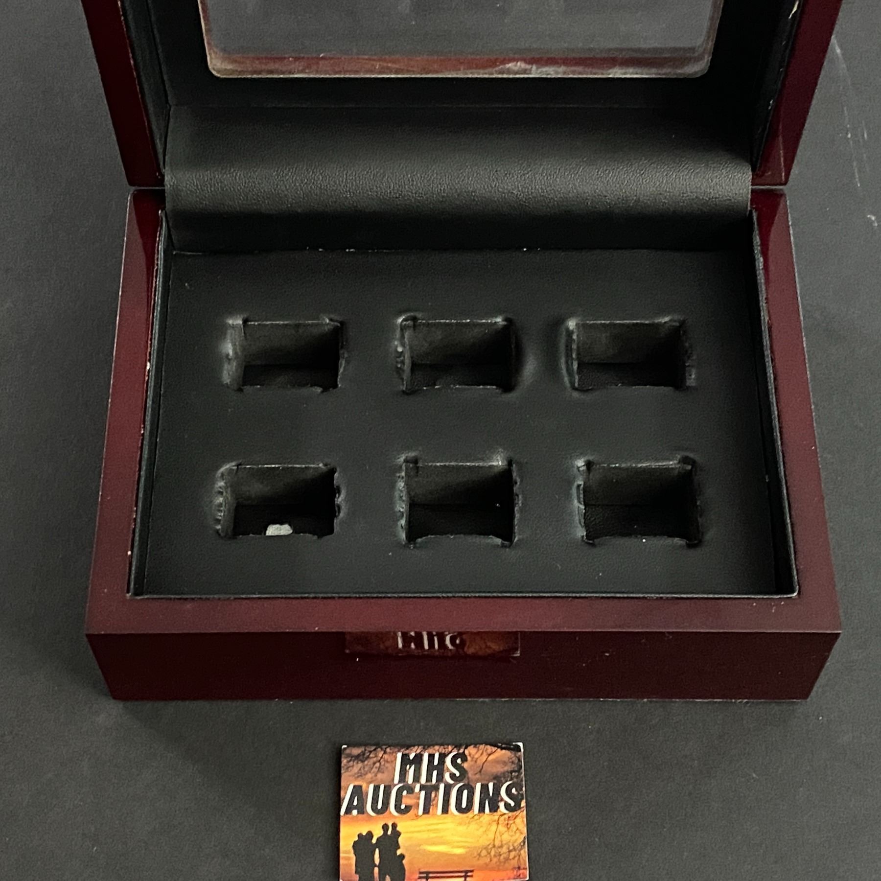 WOODEN DISPLAY CASE 6 SLOT CHAMPIONSHIP RING BOX