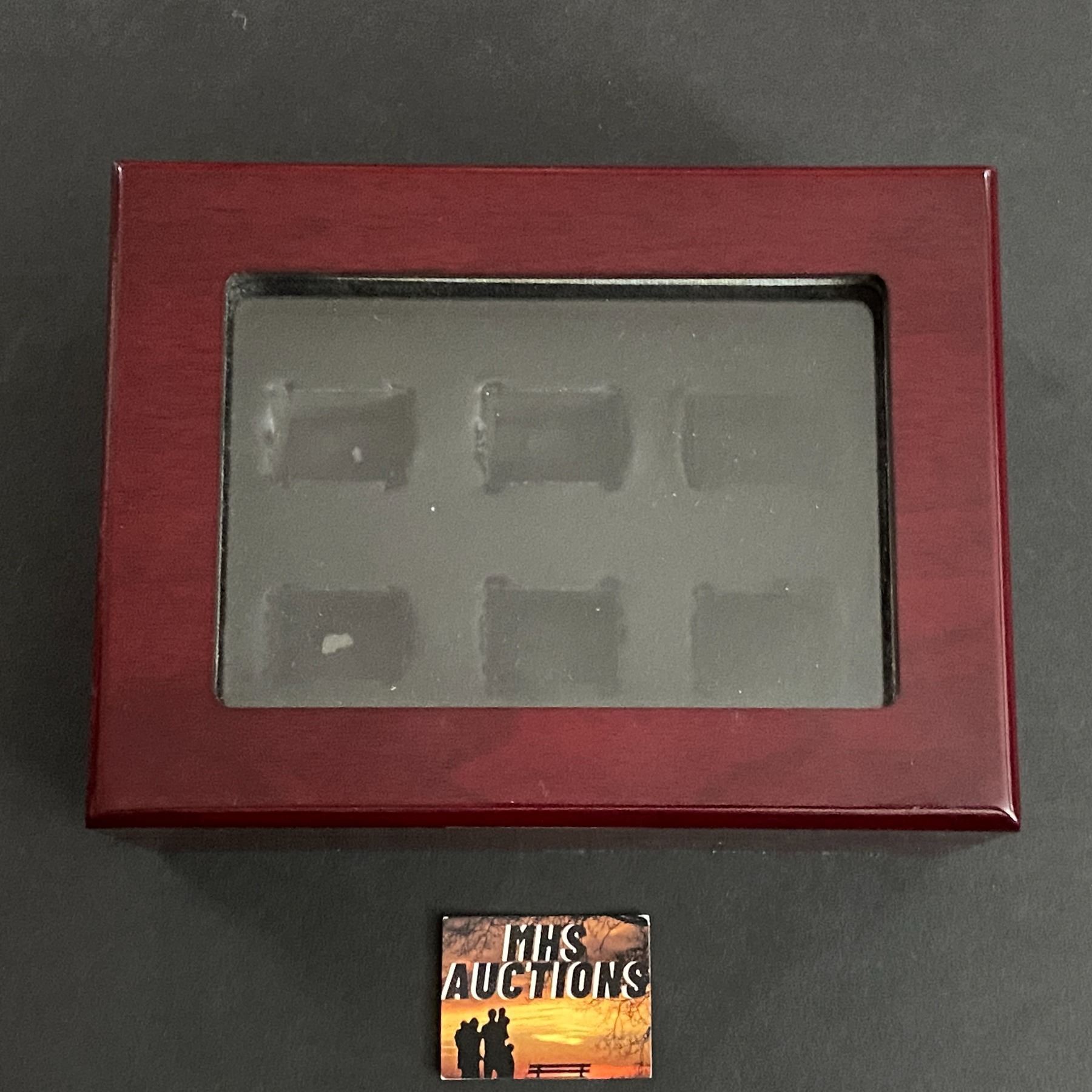 WOODEN DISPLAY CASE 6 SLOT CHAMPIONSHIP RING BOX